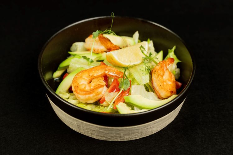 Классический салат с тигровыми креветками и фирменной заправкой "Цезарь"